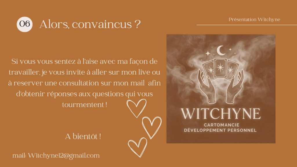Alors, bienvenue dans mon univers : Witchyne cartomancienne et accompagnante dans le développement personnel.