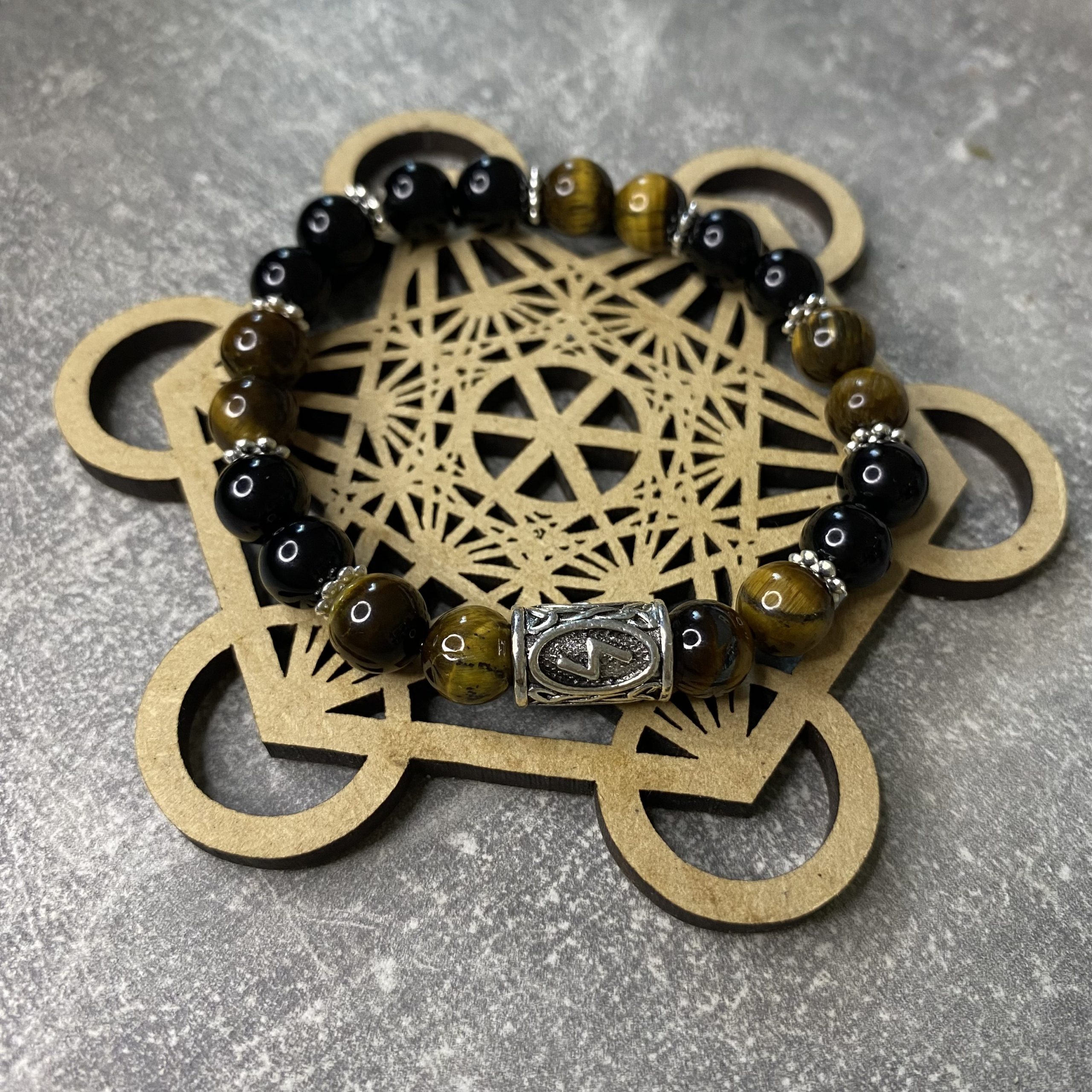 bracelet protection réussite, rune sowelu onyx et oeil de tigre
