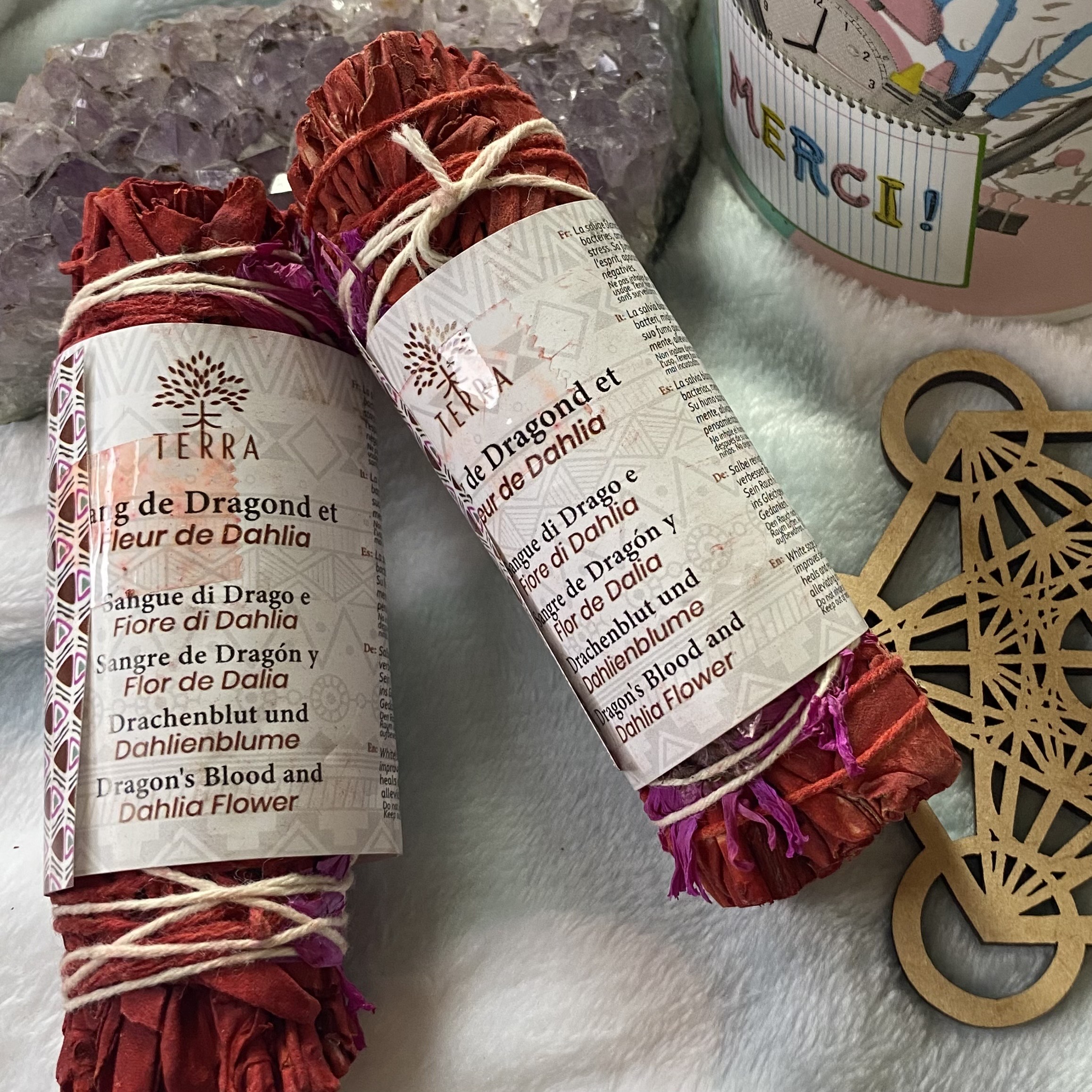 sauge blanche sang de dragon et fleurs de dhalia